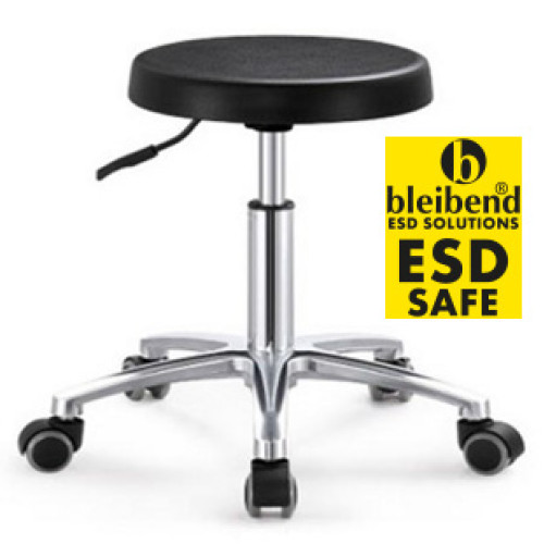 Antistatik ESD Tabure Bar Sandalyesi BLEIBEND, çalışanların elektronik üretim endüstrisi, laboratuvarlar, temiz odalar ve savunma sanayinde statik elektriğe hassas bileşen ve ürünler içeren çalışma ortamlarında ESD zararlarına karşı önlem amacı ile kullanılmaktadır.